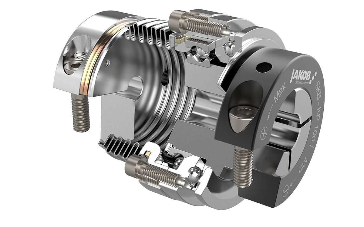 Sicherheitskupplungen von JAKOB Antriebstechnik sind sowohl für indirekte Antriebe (Anbindung beispielsweise über Riemenscheibe oder Zahnräder) als auch für direkte Antriebe (Anbindung mittels Kombination aus Sicherheitsteil und bewährter JAKOB-Servokupplung) verfügbar. Drehmomentbegrenzer für direkte Antriebe verbinden dabei das zuverlässige Ausrückverhalten des Sicherheitsteils mit den spezifischen Vorteilen von Metallbalg- (Torsionssteife, Ganzmetallausführung, hohe Betriebstemperaturen) oder Elastomerkupplungen (schwingungsdämpfend, steckbar, isolierend, bis 120°C)